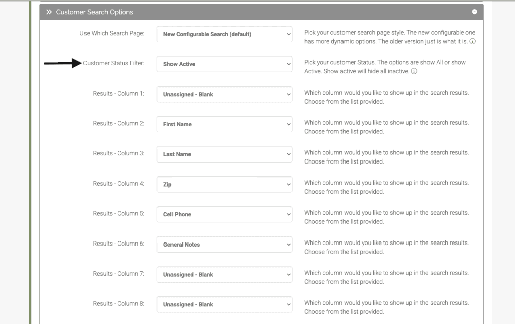 Now you can set your default customer search to show active customers only. **If you need to see inactive customers, you can use the customer advanced search and select customer status ‘all’ or ‘inactive.’