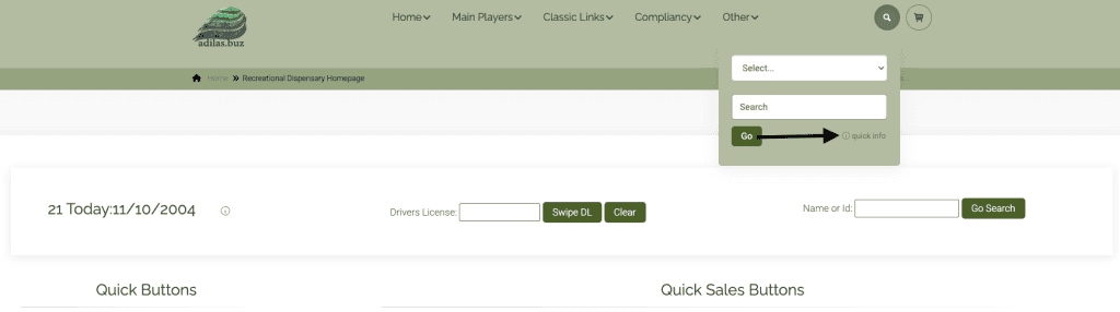 In addition to using the AI Agent field, you can also use the quick info link, which is accessed by clicking on the magnifying glass at the top of any page.