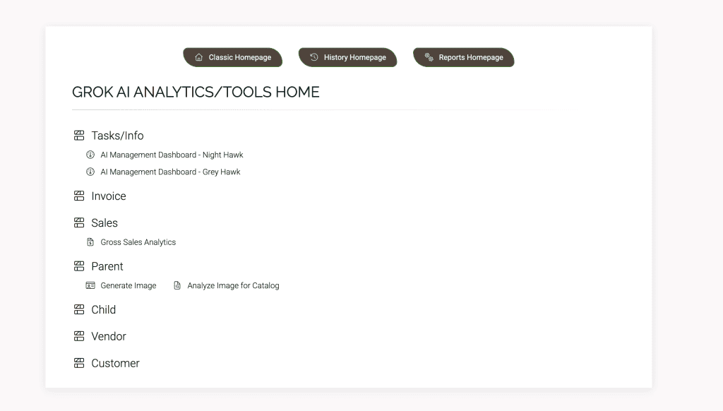 Under tasks/info: There is currently a report that can give you an overall assessment of your sales for various time periods. Click on night hawk for a dark background or grey hawk for a lighter background and a slightly different report view. While the sales information and statistics in these reports are accurate, many of the links on these aren’t yet functioning, so please keep that in mind when using this new report page.